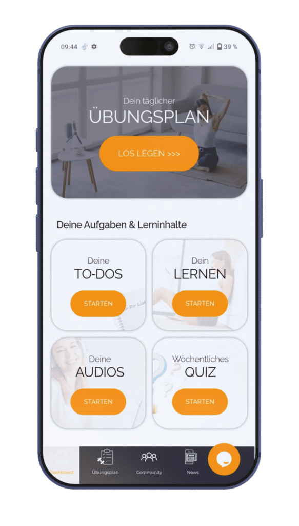Tägliche Übungen und begleitende Inhalte unterstützen dich im Alltag.